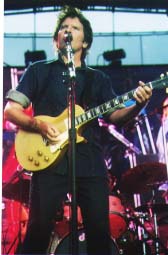 guitar, as well as some impressive work on the exotic Australian Rock and roll can be a lot of fun, and it was obvious that no one has to convince John Fogerty of that. With a smile as seemingly permanent as Lisa Kudrow’s in HBO’s “The Comeback” but infinitely more genuine, Fogerty and his highly talented band ripped into an hour long set of mostly hits from the CCR days. Everyone knows these songs and could probably sing them at a karaoke night without the benefit of the lyric monitor. Yet seeing the enthusiasm Fogerty puts into these classic songs in a live performance is highly satisfying even if it seemed like a greatest hits show. Fogerty’s voice still has that dusky, soulful quality when crooning out tunes like “Midnight Special” and “Lodi.” A new song was also performed, an anti war plea that despite the video imagery from Viet Nam was obviously aimed at Iraq. This was the one point where the fun appropriately disappeared, to be replaced by introspective that rippled through the audience. Protest songs have always been an ingrained part of rock music, and when someone of John Fogerty’s talent and stature delivers one during his high powered live performance, it creates the proper effect. Hopefully, the proper thinking from more people as well. I had a lot of expectations seeing Tom Petty for the first time. Everyone